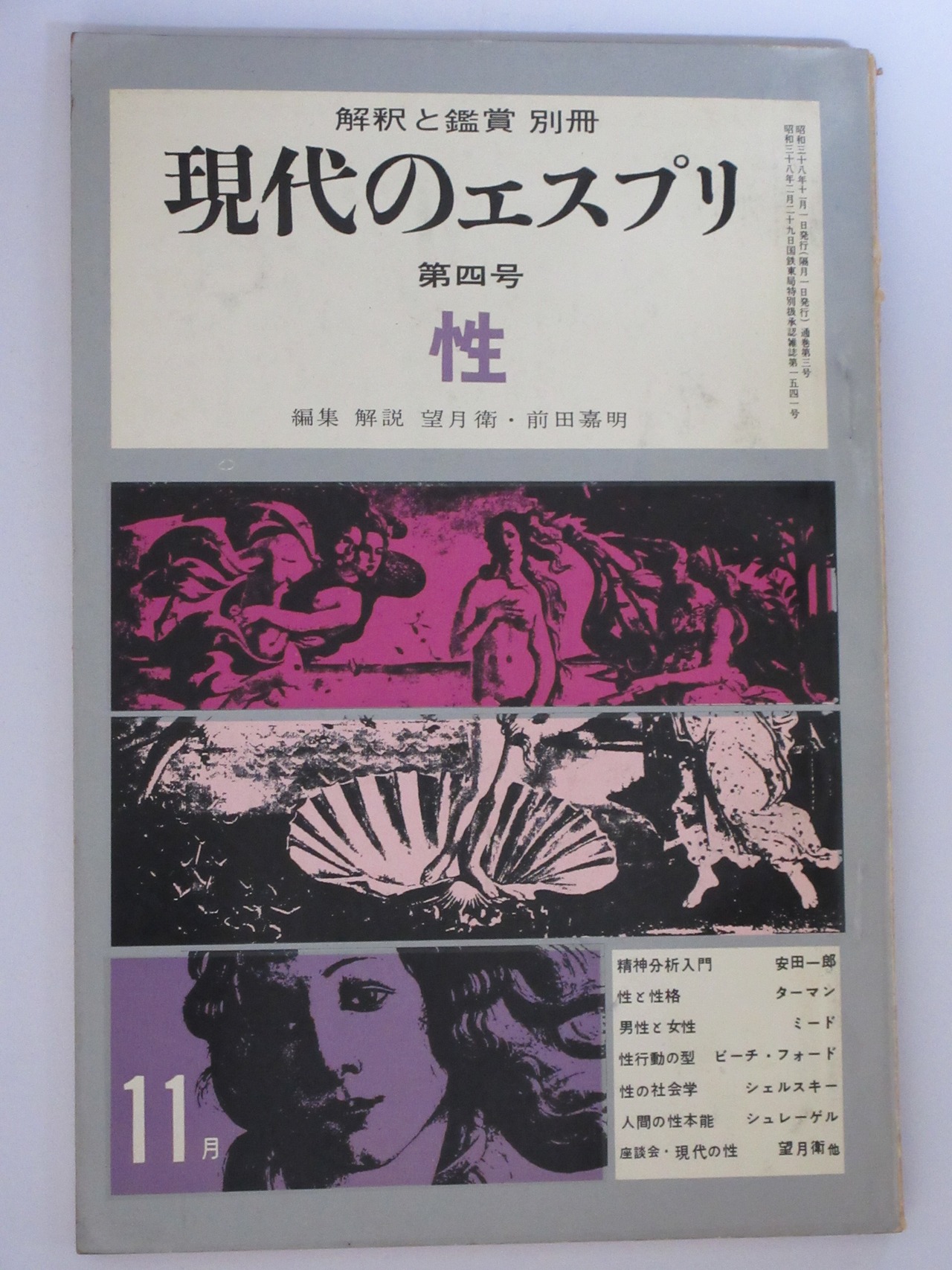 本の紹介:目次にある表題は次のとおり:精神分析入門/性と性格/男性と女性/性行動の型/性と社会学/人間の性本能/現代の性。出版当時の著名な研究者が執筆者として名を連ねているが、人間の本質に迫った論文は見当たらないように思う。