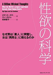本の紹介:脳神経科学の専門家がポルノの研究をすることは通常あり得ないが、著者らはインターネットを情報源とし、最新のデーターマイニング技術を駆使して、4億の検索ワード、65万人の検索履歴、数十万の官能小説、数千のロマンス小説、4万のアダルトサイト、500万件のセフレ募集投稿、数千のネット掲示板投稿を解析し、究極の生情報に基づいてヒトの性的欲望の実態と男女差の現実を明らかにした、恐るべき現代の「解体新書」。