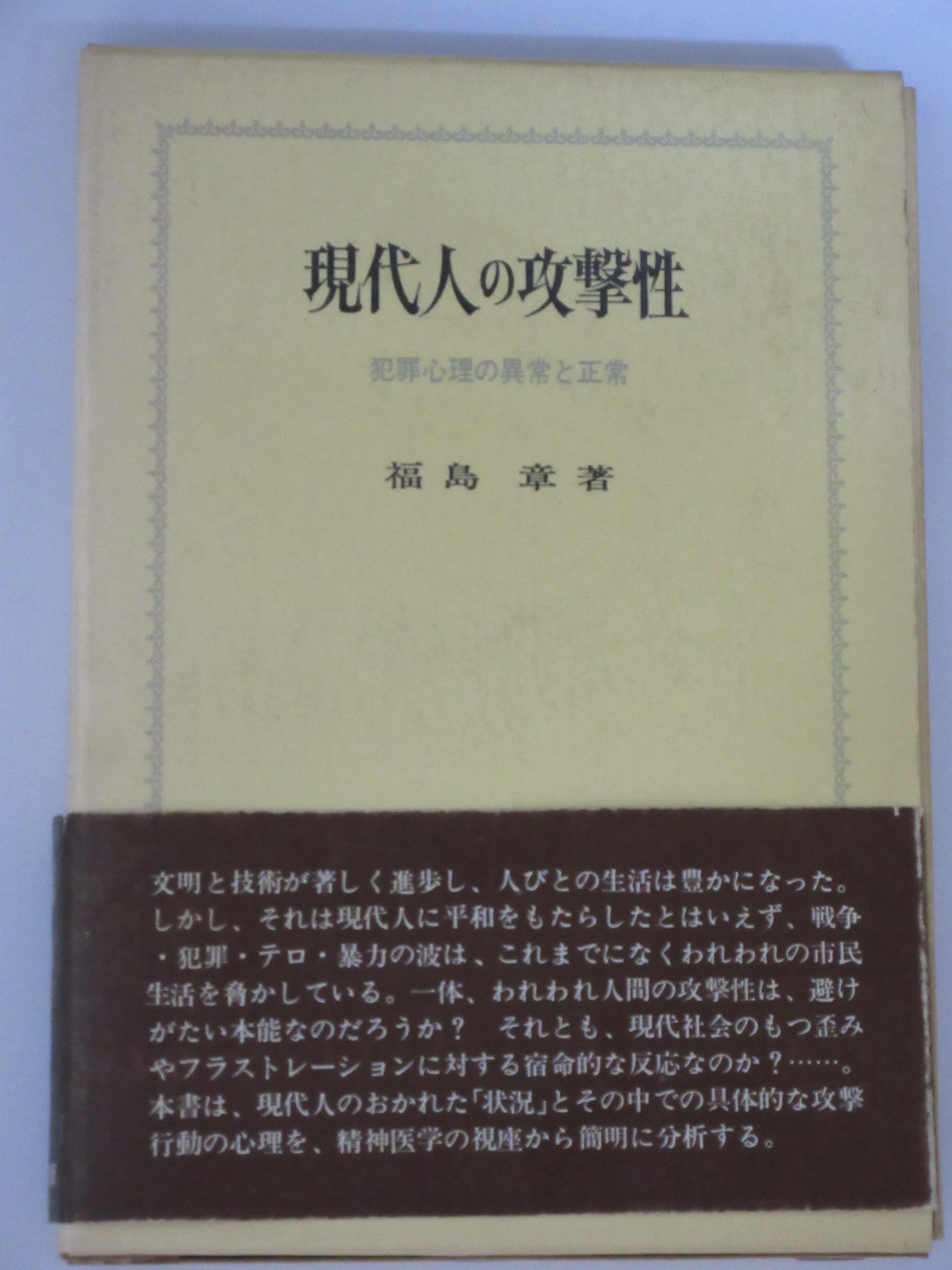 本の紹介:犯罪者の攻撃行動を人格や条件反応の異常、遺伝的変異などとしか見ない旧来の立場を脱し、精神分析学や甘え理論を応用して全人的な異常行動としてのケース研究を試みたもの。