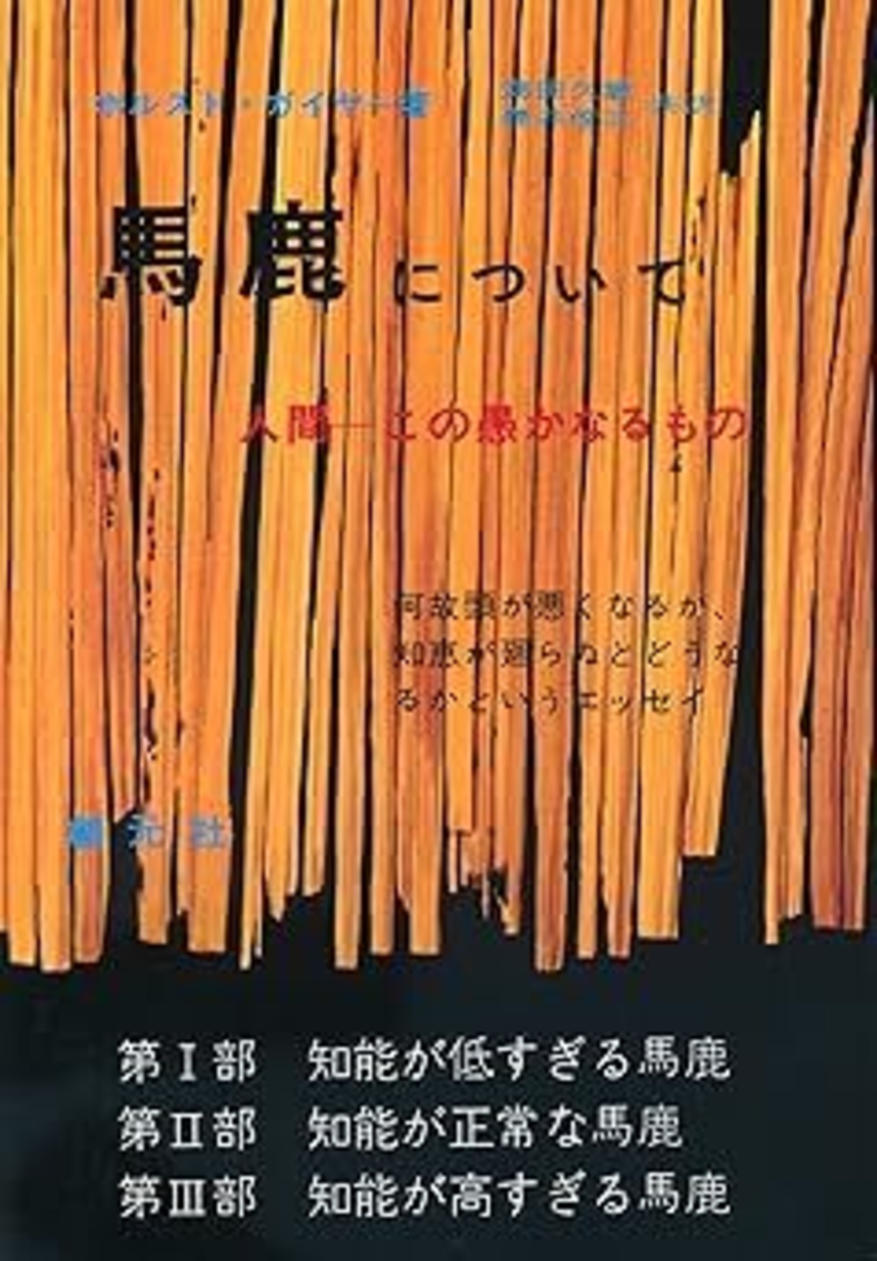 本の紹介:米食のわが国では麦わらはごく身近で親しみ深いものであるが、ドイツでは馬鹿の象徴であり、俗語的には「あの馬鹿のせいで~」というところを「あの麦わら頭のせいで~」ということがある。本書の外カバーに麦わらの写真が使われている所以。第一部:知能が低すぎる馬鹿/第二部:知能が正常な馬鹿/第三部:知能が高すぎる馬鹿