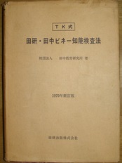 本の紹介:1947年の初版、1954年の改訂版を経て、1970年に新訂版として出された絶版本。その後、1987年に全訂版、2003年には「田中ビネー知能検査Ⅴ」が出ている。